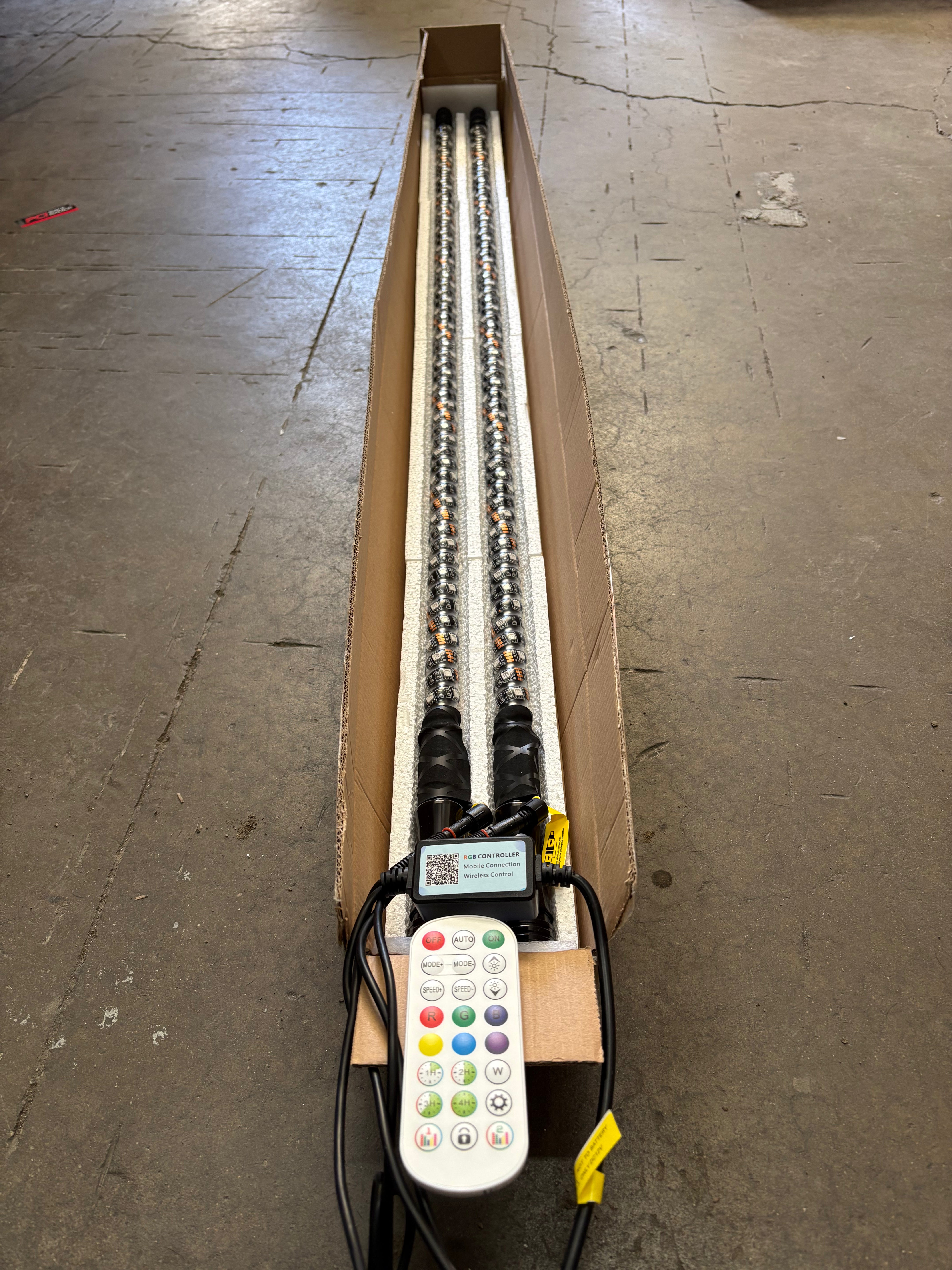 Introducing our Eco Series 4' RGB LED Whips, engineered to deliver vibrant color performance and reliable functionality at an exceptional value. Designed for versatility and ease of use, these whips can be controlled seamlessly via Bluetooth app connectivity or the included wireless remote control, allowing you to customize colors and lighting modes with precision.