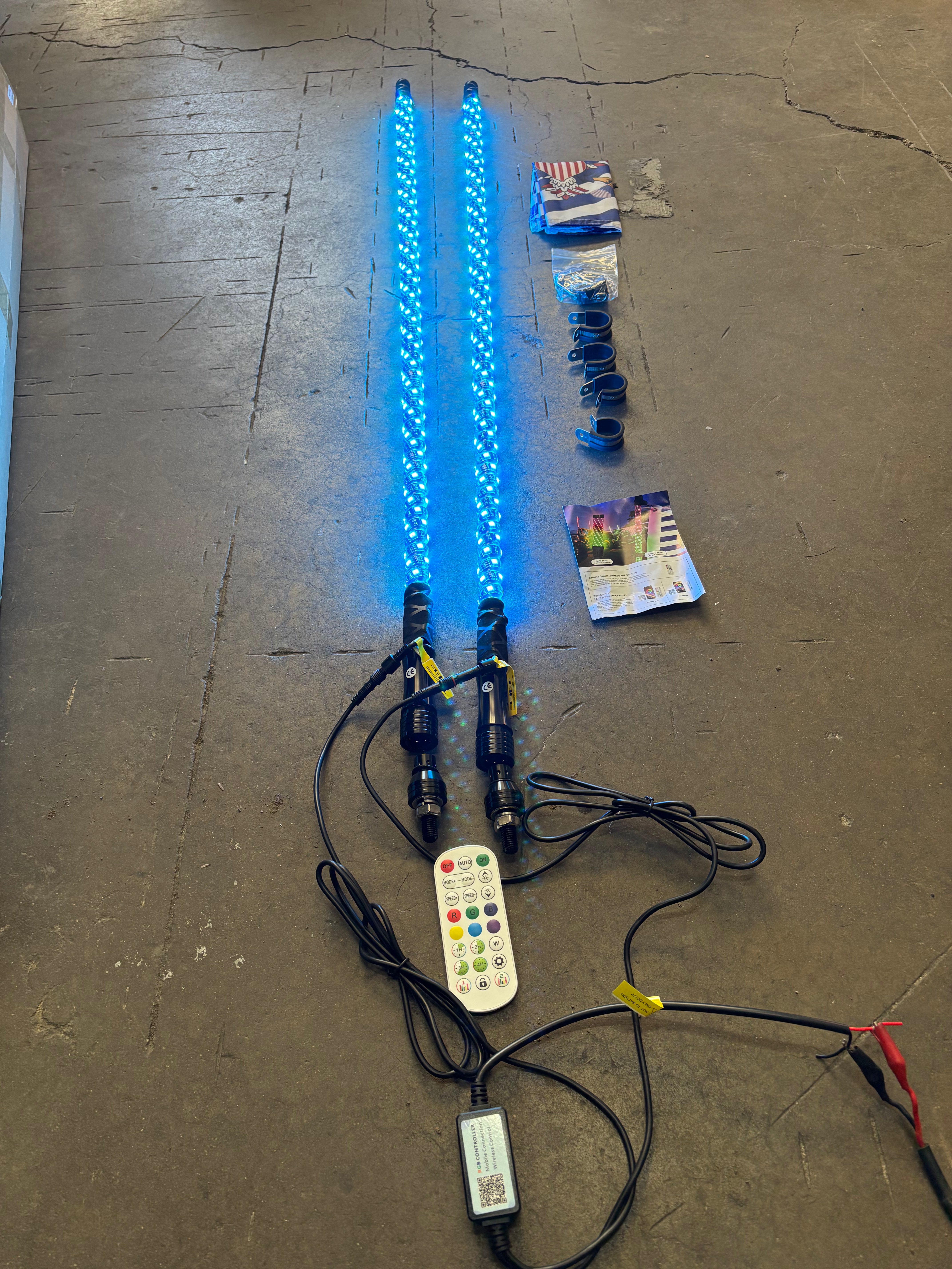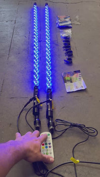 Eco 4' RGB LED Whip Pair - Bluetooth & Remote With Quick Release Base